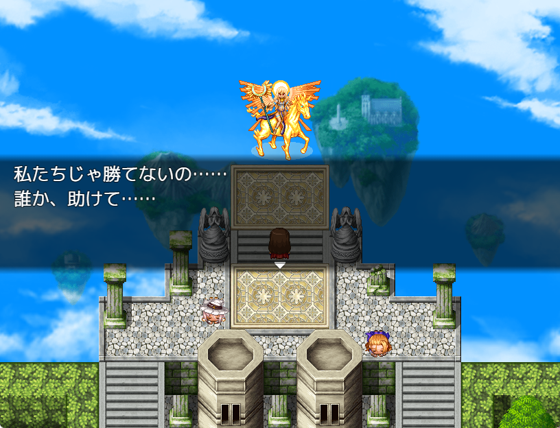 連続して設定することで、まず上部の会話が表示されたあと、決定キーを押すと次の会話が表示されるようになり、同じキャラクターが会話を続けているような表現も行えます。