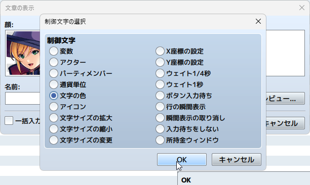 制御文字は指定した記述を覚えて入力する必要がありましたが、RPGツクールMZでは、バージョンアップにより制御文字が簡単に導入できる機能が追加されています。