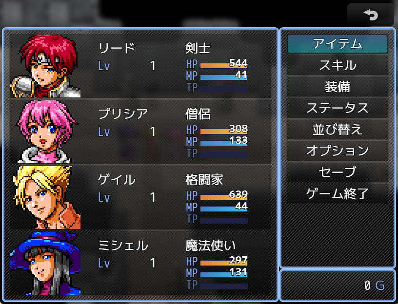 「MEGA FANTASY 歩行アクター and 顔グラ」の素材を実際にRPGツクールMZに入れてみました。