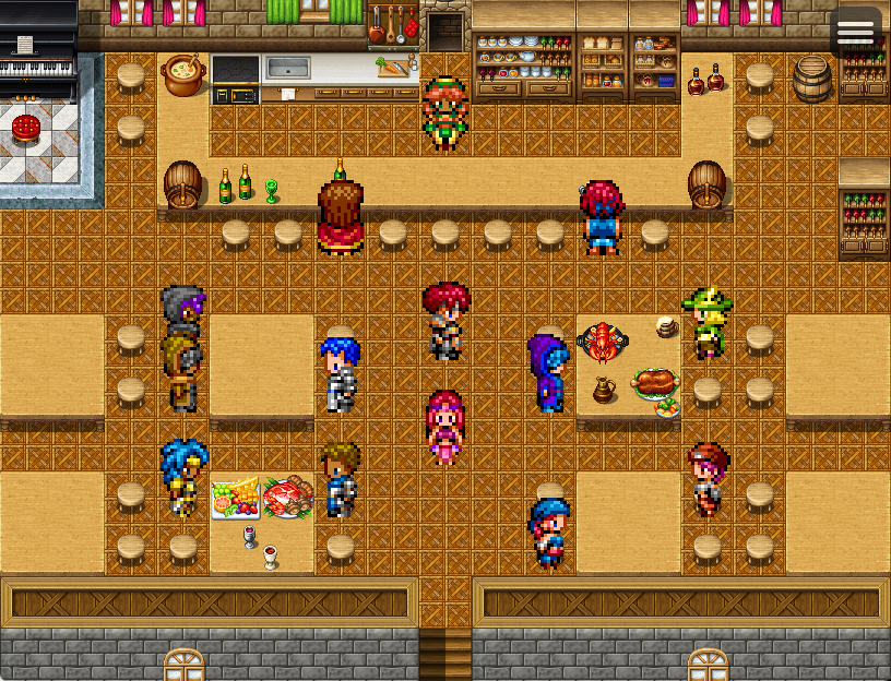 まずは酒場のマップに色々な歩行キャラクターのモブを配置してみました。