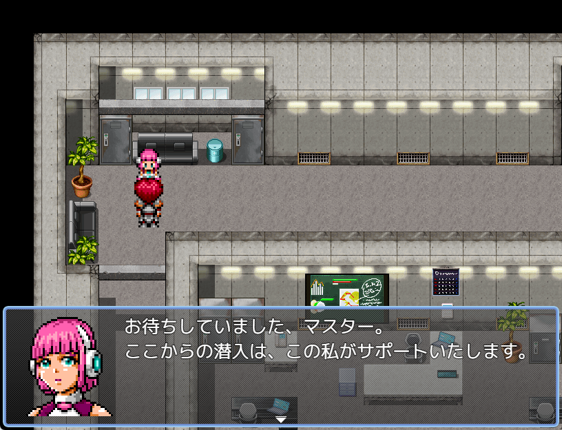 最後はSFマップと一緒に使えるか、RPGツクールMZの近未来系素材と一緒に試してみました。ロボットやアンドロイドに使えそうなキャラクターは数キャラ搭載。そこまで数が多くないため、パターンなどを活用してもSFメインの作品を作るのは難しいかも知れません。ですが、シナリオに出てくるサブキャラや、サポート機能を提供するモブなどに使うぐらいであればしっかりとSF系作品にも使えそうです。