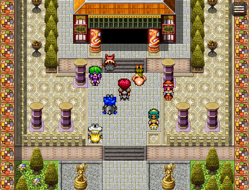 さらに優秀なのは、Faces画像も収録されていることです。画像に対応した顔グラフィック用の画像も収録されているため、歩行グラフィックとのイメージにあうような顔グラフィックも実装できます。顔グラフィックの色合いもレトロ風のRPGに近いデザインとなっているため、顔グラフィックを変えただけですがツクールMZの標準感がかなり減っているようにも見えます。